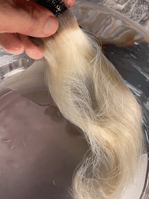 Follow the instructions included with your semi permanent hair color kit to mix your hair dye. Extrude hair dye paste+hydrogen peroxide, stir it evenly in 1:1 ratio, and then comb it evenly on the hair immediately.This is also a good time to put on a pair of rubber gloves to protect your hands.