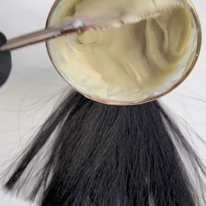 2. For multicolor sections, firstly dye the black hair for 20 minutes, then dye the black and yellow hair together and (Note: Do not dye the roots now)